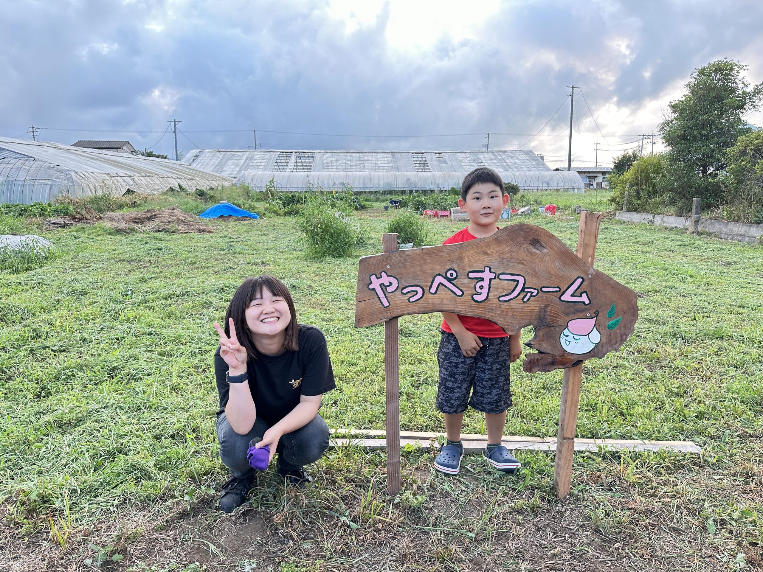 2023年8月17日、地域のボランティア活動に参加した高校生たちが作ってくれた、やっぺすファームの看板を設置しました。地域の未来を担う若者たちの協力で、やっぺすファームがより魅力的な場所になりました。