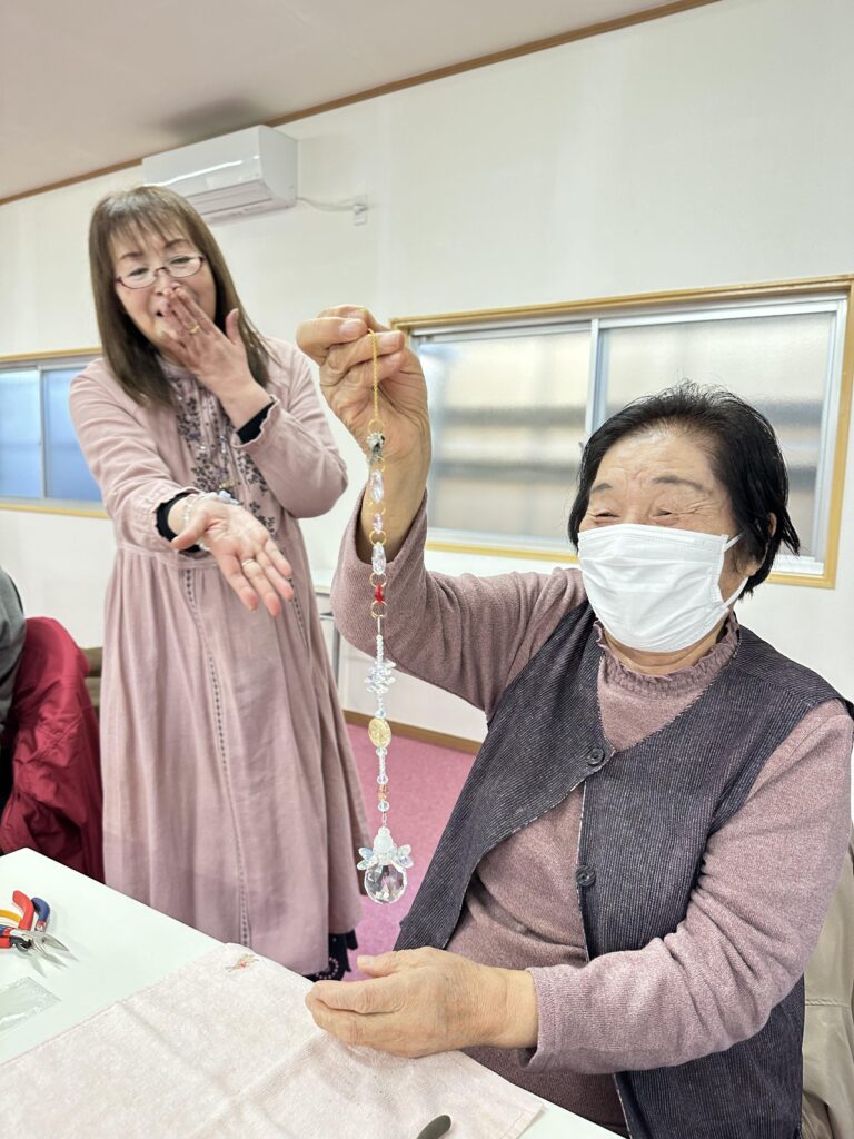 12月の第1回目では、千田真理子さんをお招きして、サンキャッチャー作りの会が開催されました。参加者の皆さんは、材料選びから熱心に取り組み、その美しい作品に釘付けになっていました。